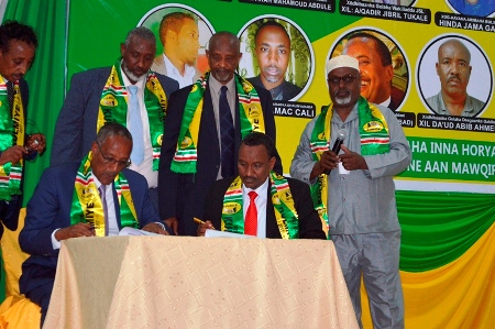 Ugu horrayn, Xoghayaha Guud ee xisbiga KULMIYE Md. Xasan Siciid Yuusuf, ayaa furitaankii xafladda ka akhriyey qodobada heshiiska labada dhinac isku raaceen, kuwaas oo bud-dhig u noqonaya midowgooda iyo midnimo waarta oo kor loogu qaadayo awoodda taageero ee xisbiga KULMIYE.