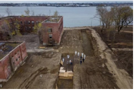 Khudbaddii Jimcaha ee Aqalka Cad, Mr Trump wuxuu sheegay inuu arkay sawirrada diyaaradaha aan duuliyaha wadin ka qaadeen qabriga weyn ee ku yaal Jasiiradda New York ee Hart Island oo si wadar ah dadka loo aasayo.